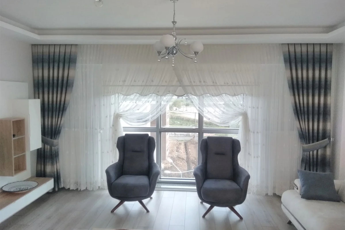 Curved curtains are not only an aesthetic option, but also attract attention with their functionality. These curtains, which are usually used in the form of a combination of tulle and backdrop curtains, allow natural light in while maintaining privacy. The diagonal gathering mechanism allows the user to easily adjust the appearance of the curtains and light control. Especially in spaces with high ceilings or large windows, curved curtains emphasize the dimensions of the space and create a spacious atmosphere.