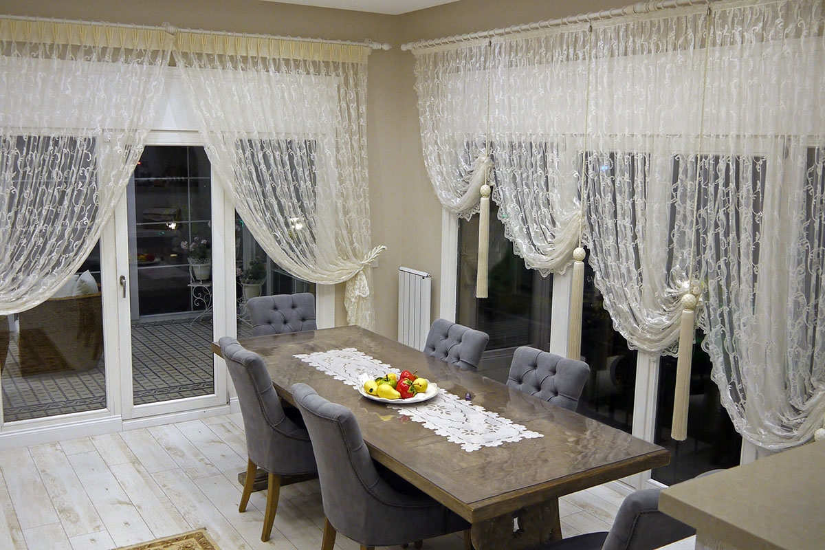 Curved curtain models appeal to every style with different fabric and color options. These curtains, produced with various fabrics such as satin, silk, tulle or velvet, can be personalized according to the general decoration of the space. Patterned or plain, classic or modern designs can be preferred to suit your decoration. In addition, ribbon curtains, completed with tassels, tie ribbons and special curtain accessories, add a unique elegance to your space.