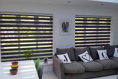 Features: Zebra blinds, where strip-shaped opaque and transparent fabrics are arranged alternately, facilitate light control.